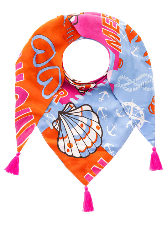 💕 Zwillingsherz Dreieckstuch "Meer Anker Mix" 100 % Viskose nachhaltig Neonpink