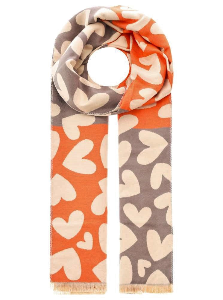 💕 Schal Tuch "Herzen" 100 % Viskose Orange Grau