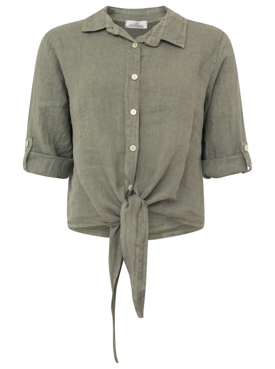 💕 Zwillingsherz 100% Leinenbluse "Uni Summer" Khaki