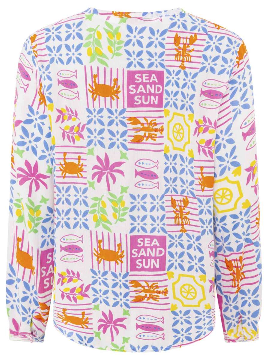 Die Bluse "Dolce Vita Patchwork" kombiniert verspielte Muster mit leichtem Stoff – perfekt für feminine Looks mit italienischem Flair.