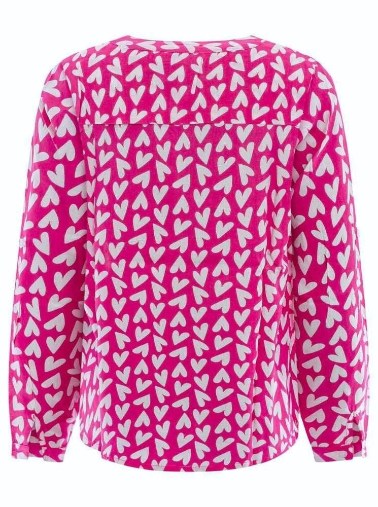 Heiter und charmant: Unsere Bluse mit Herz-Muster und Knopfleiste verleiht deinem Outfit eine verspielte Note. Aus 100 % Viskose gefertigt, bietet sie ein angenehmes Tragegefühl und lässt dich stilvoll strahlen.