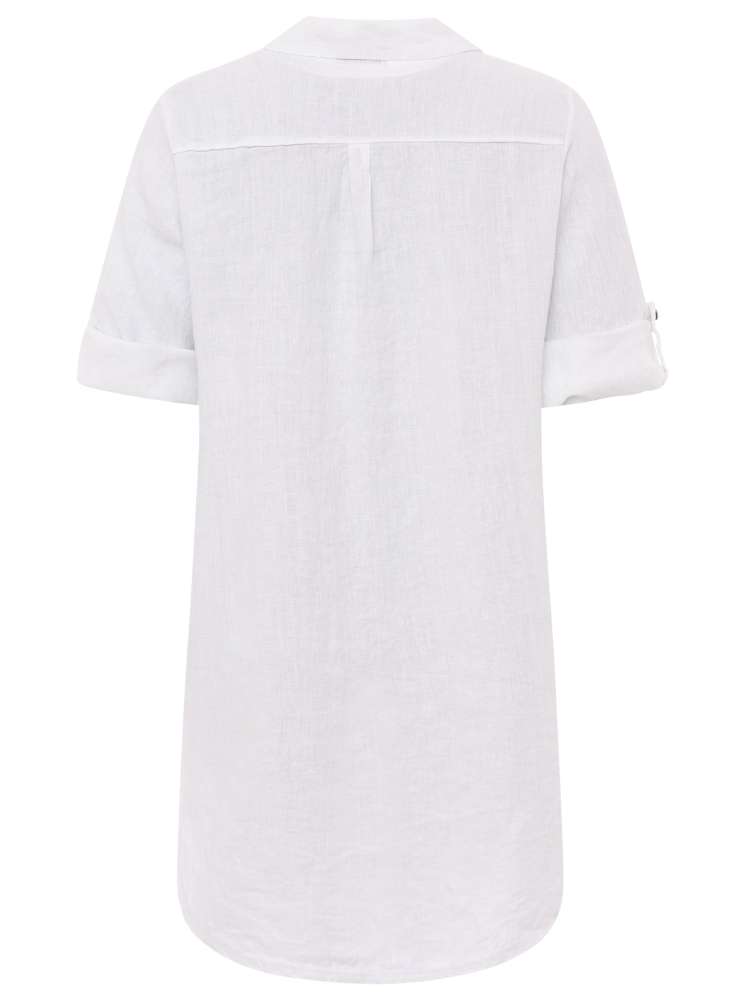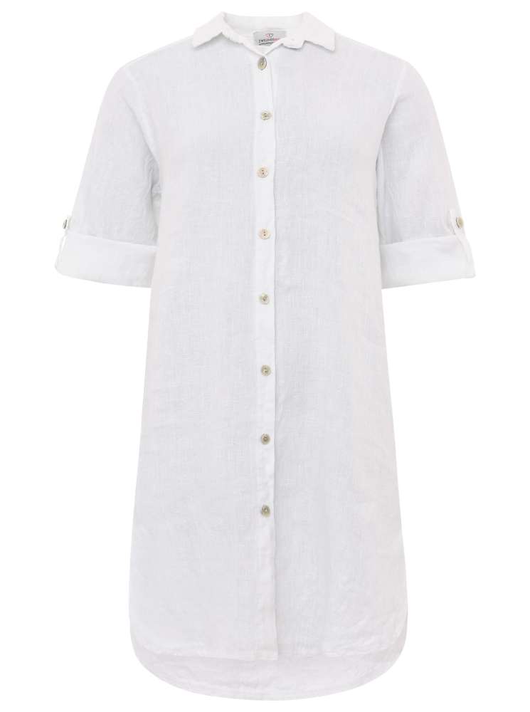 Longbluse aus Leinen mit eleganter Knopfleiste und dekorativen Ärmelknöpfen, vereint Stil und Komfort. Gefertigt aus hochwertigem 100 % Leinen, bietet sie ein leichtes und atmungsaktives Tragegefühl.