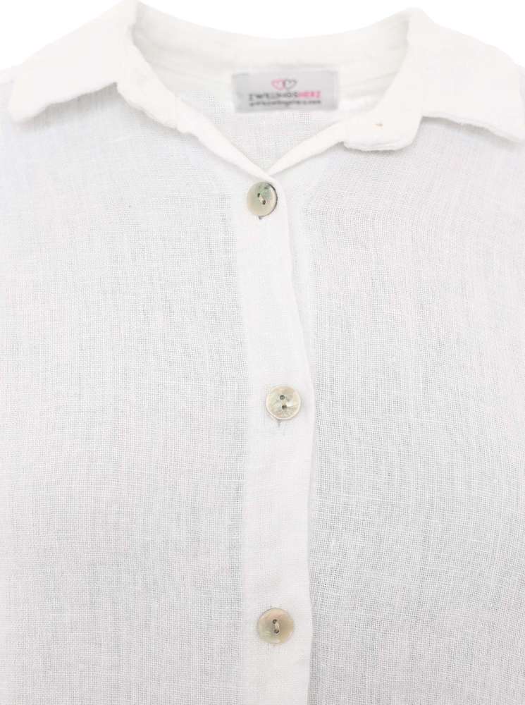 Zwillingsherz Longebluse aus 100 % Leinen mit einer Knopfleiste