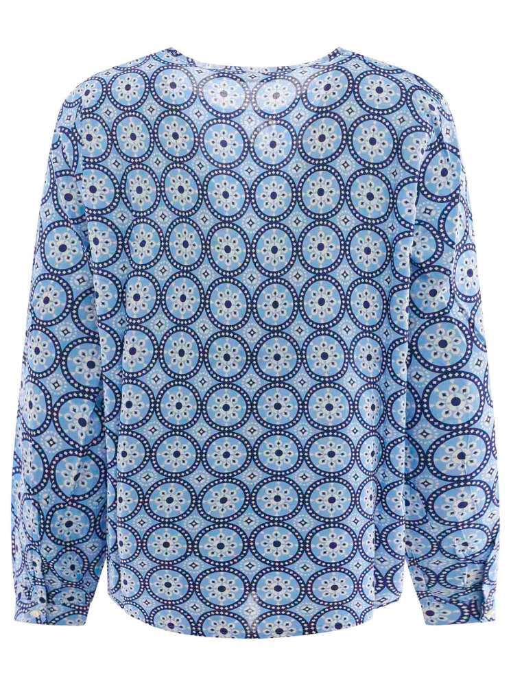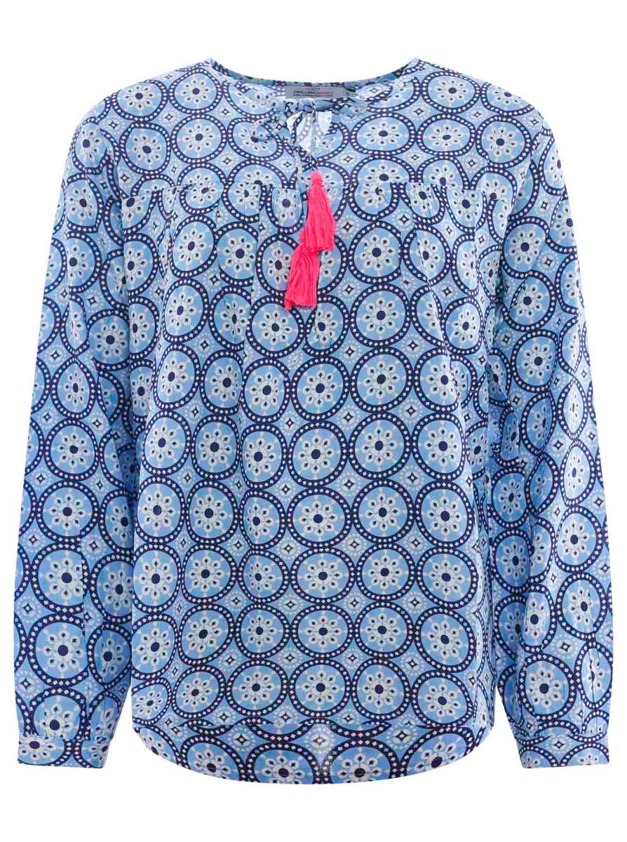 Tauche ein in ein Spiel aus Formen mit dieser Bluse im geometrischen Muster. Die Kordel mit Tasseln und die charmanten Ärmelknöpfe verleihen einen eleganten Touch. Hergestellt aus 100% Viskose für ein leichtes und stilvolles Trageerlebnis.
