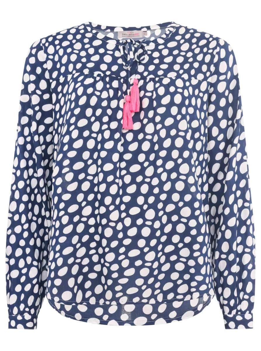 đź’• Zwillingsherz Bluse "Punkte Classic" 100 % Viskose Marine