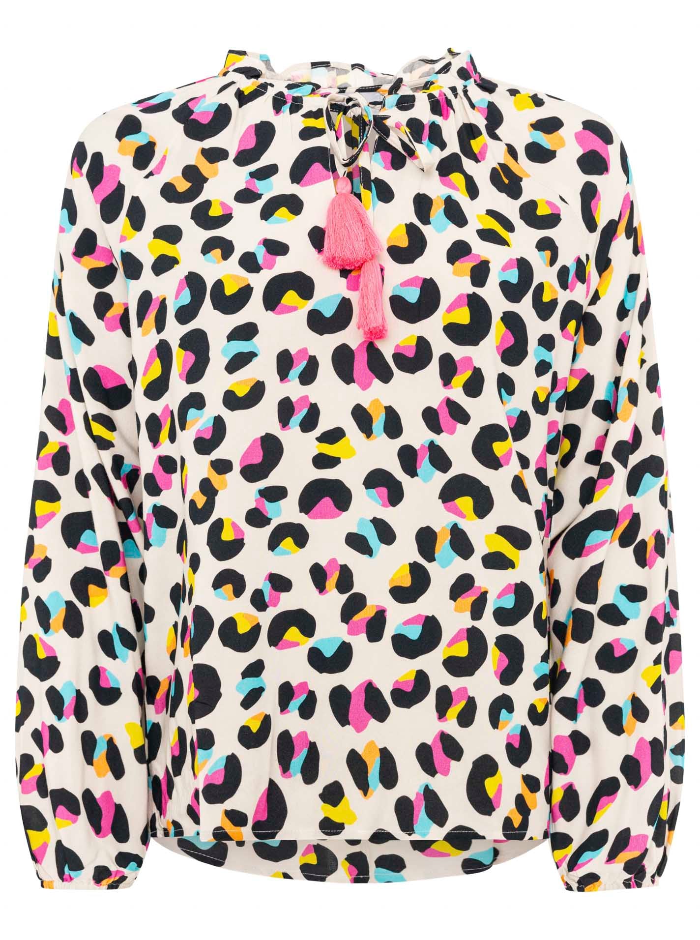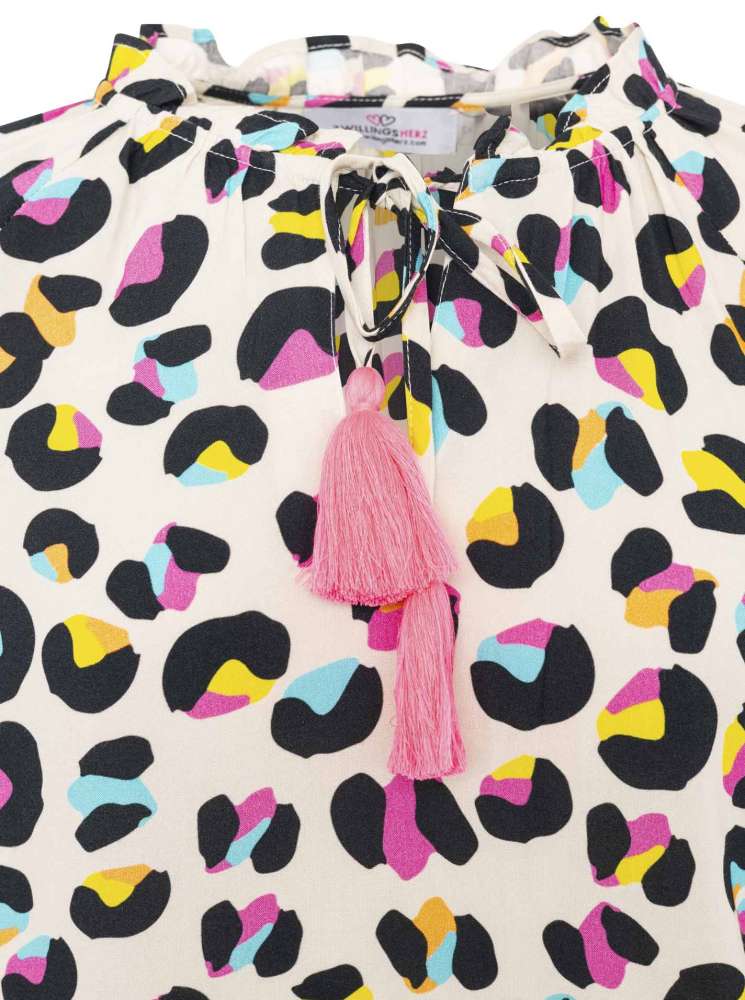 Die Zwillingsherz Bluse "Crazy Leo" begeistert mit einem ausgefallenen Leo-Print und lebendigen Farben. Stylisch, modern und ein absoluter Hingucker fĂĽr jedes Outfit!