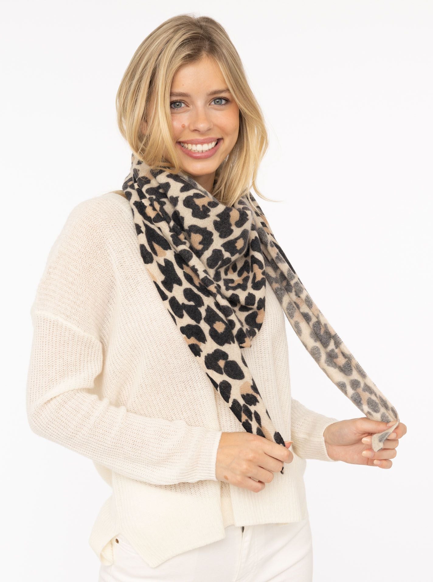 đź’• Zwillingsherz Dreieckstuch 100 % Kaschmir "Leo Print" Hellbeige