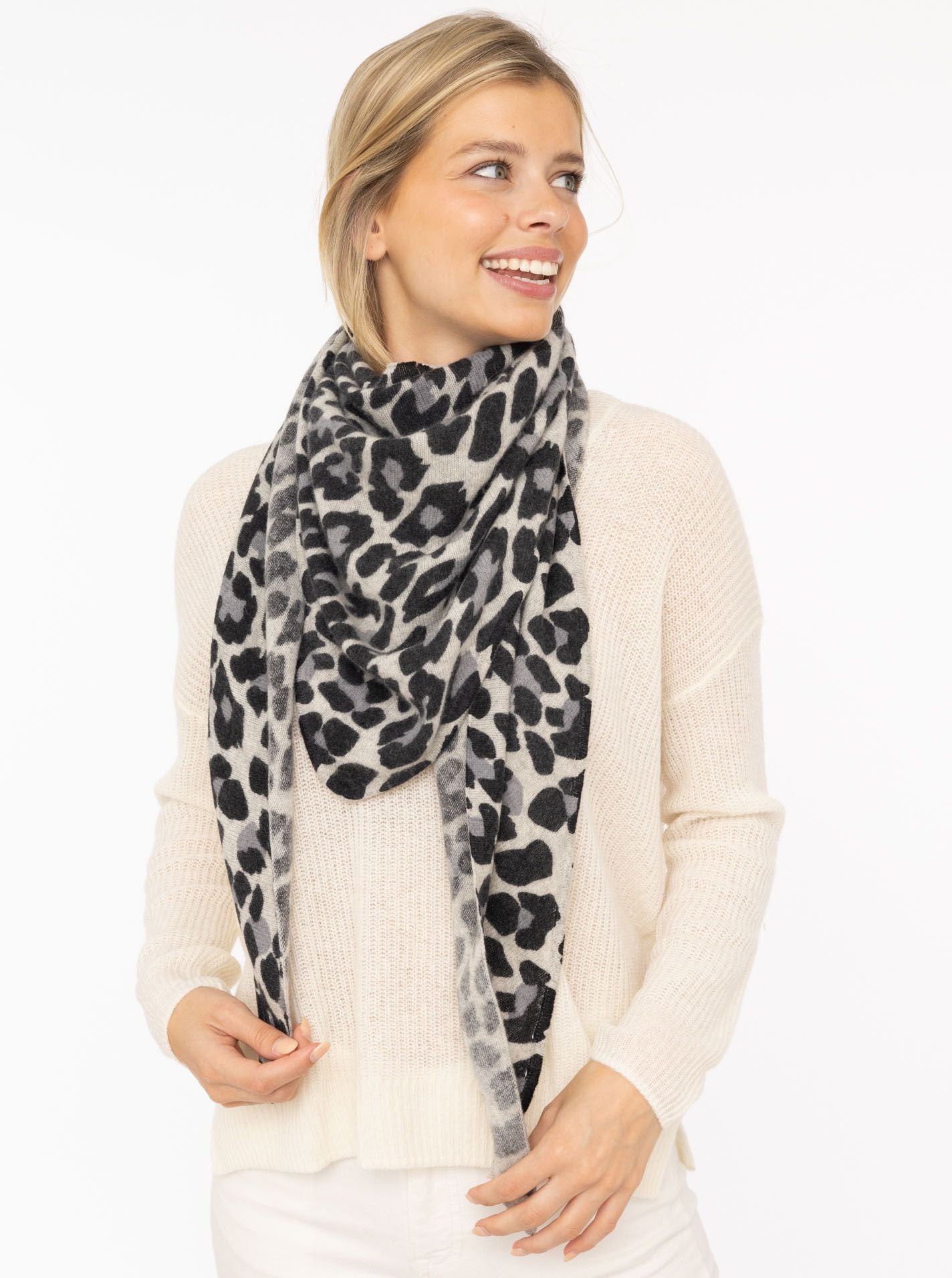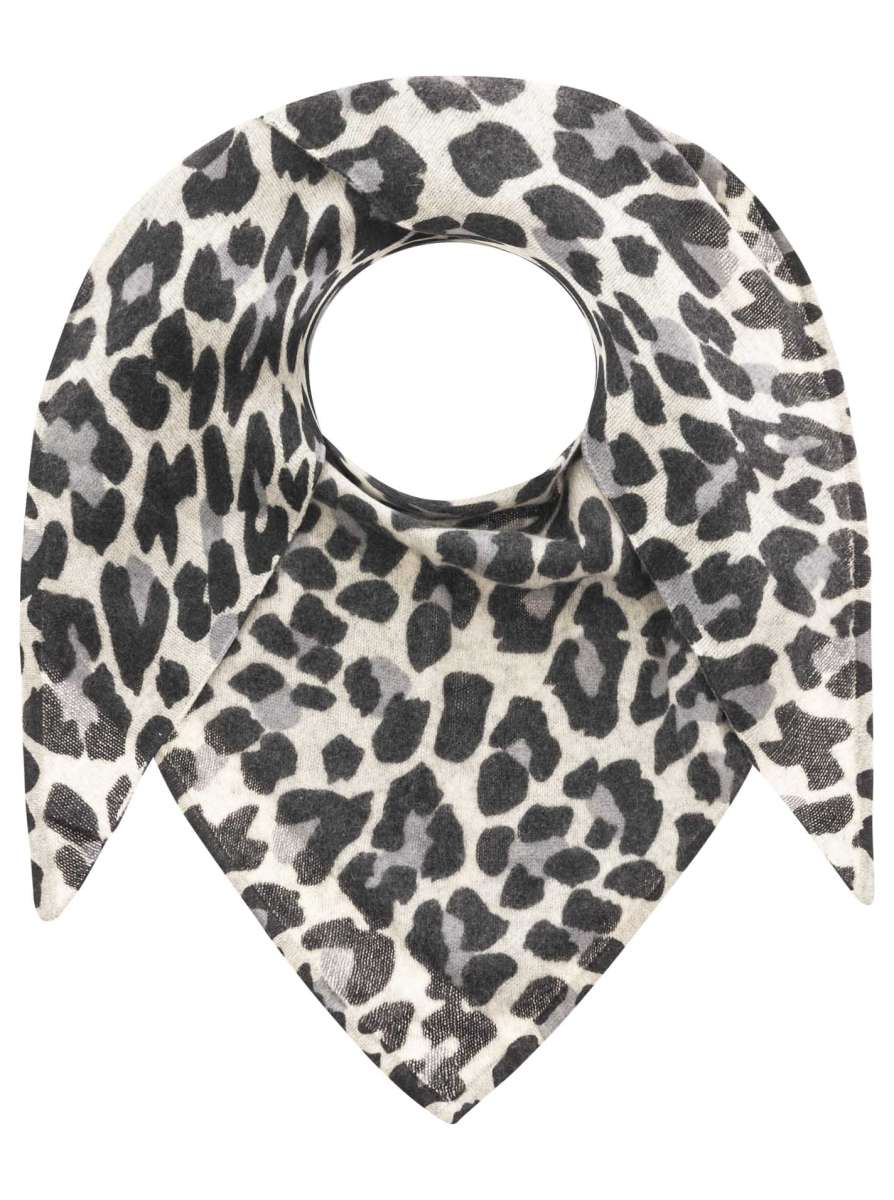 đź’• Zwillingsherz Dreieckstuch 100 % Kaschmir "Leo Print" Kaschmir Hellgrau