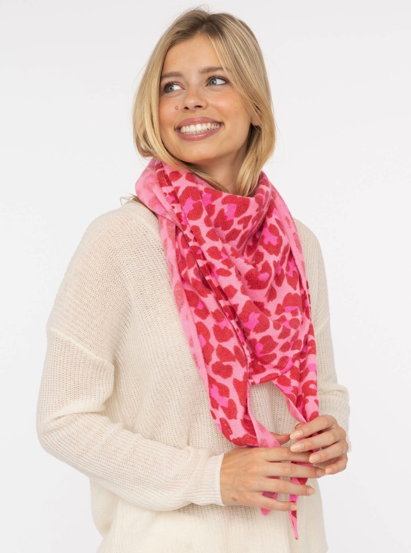 💕 Zwillingsherz Dreieckstuch 100 % Kaschmir "Leo Print" Kaschmir Bubblegum