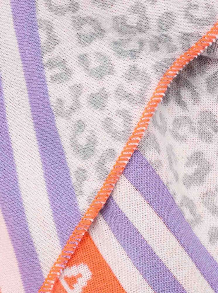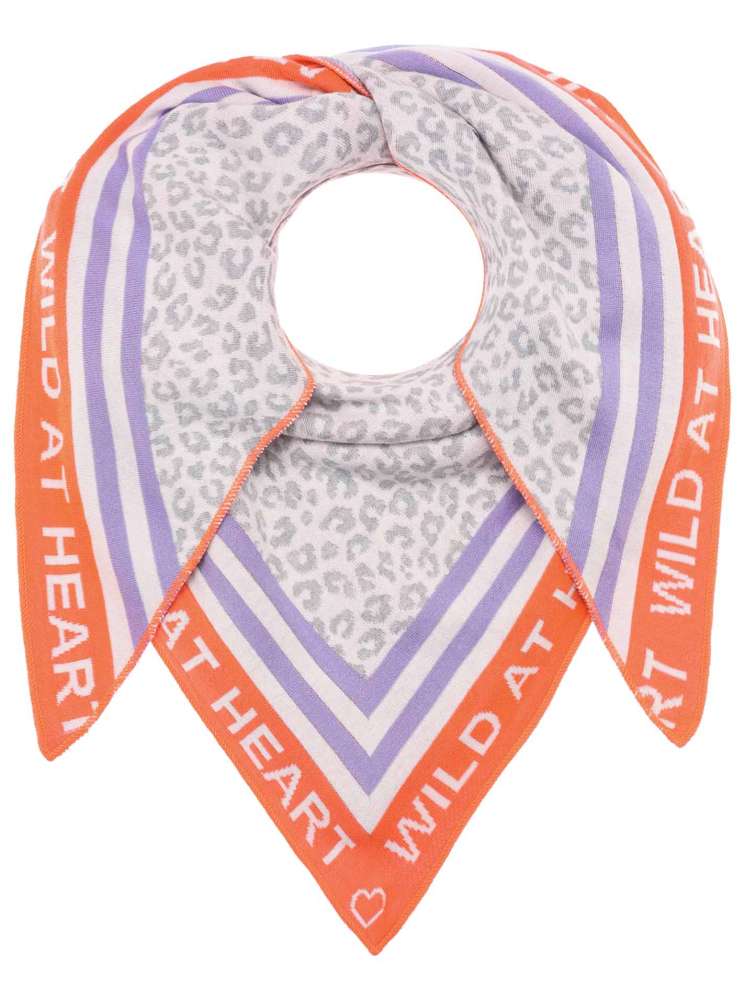 Das Dreieckstuch ist dank seines hohen Baumwollanteils super weich und wärmend. Das übliche Leopardenmuster, wird durch das besondere Herzdesign zu einem richtigen Hingucker. Am Rand zieht sich außerdem der Schriftzug "Wild at heart" zusammen mit Streifen entlang. Das Material setzt sich aus 50 % Baumwolle und 50 % Polyacryl zusammen.