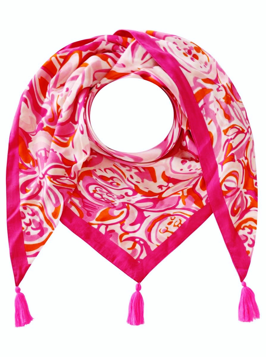 Dieses Dreieckstuch mit lebendigem Aquarell-Print und dekorativen Quasten ist ein echter Hingucker. Aus 100 % Organic Bambus Viskose gefertigt, bietet es ein angenehm leichtes Tragegefühl und eine fließende, weiche Textur.