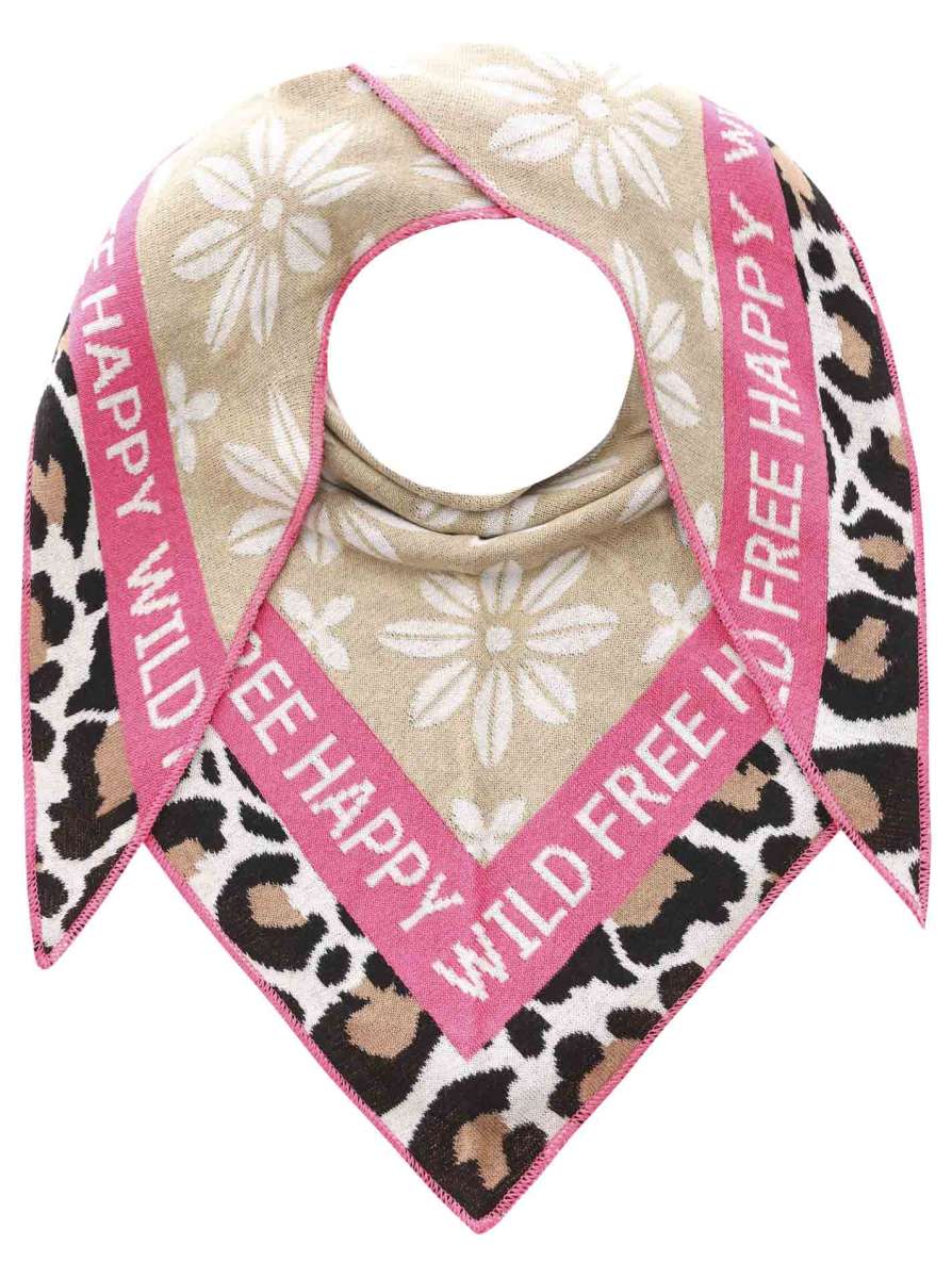 💕 Zwillingsherz Dreieckstuch "Blumen & Leo" Baumwolle Beige Pink