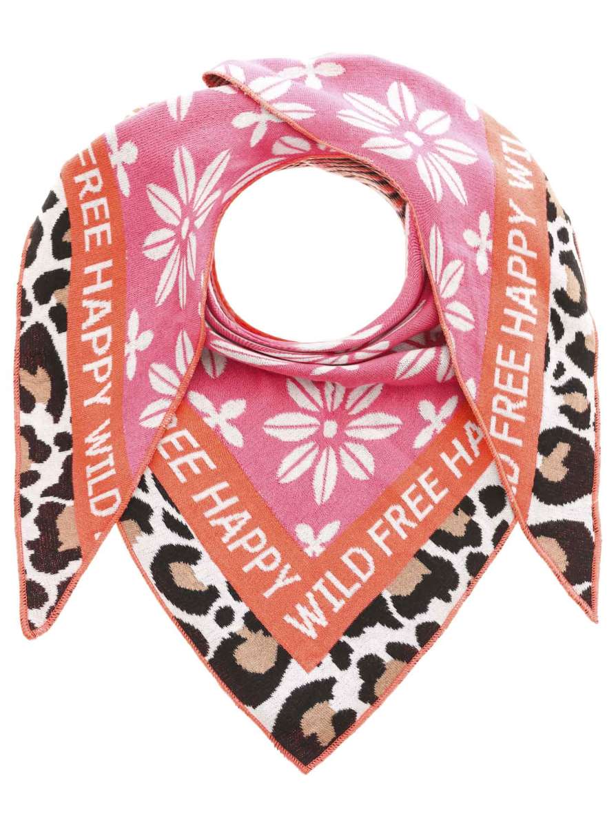 💕 Zwillingsherz Dreieckstuch "Blumen & Leo" Baumwolle Orange Pink