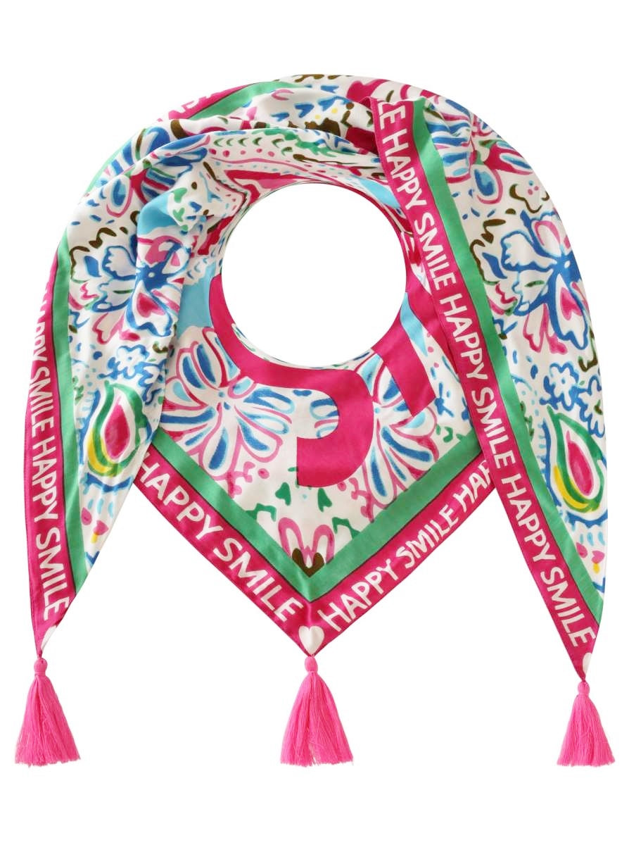 Dieses zauberhafte Dreieckstuch mit einem abstrakten Blumenmuster und dekorativen Quasten verleiht deinem Look eine fröhliche Note. Hergestellt aus 100 % Organic Bambus Viskose, bietet es ein angenehm leichtes Tragegefühl und eine wunderbar weiche Textur.