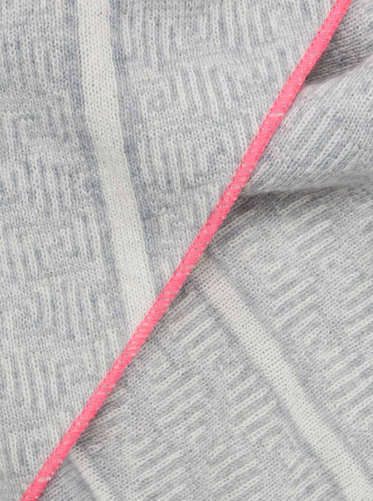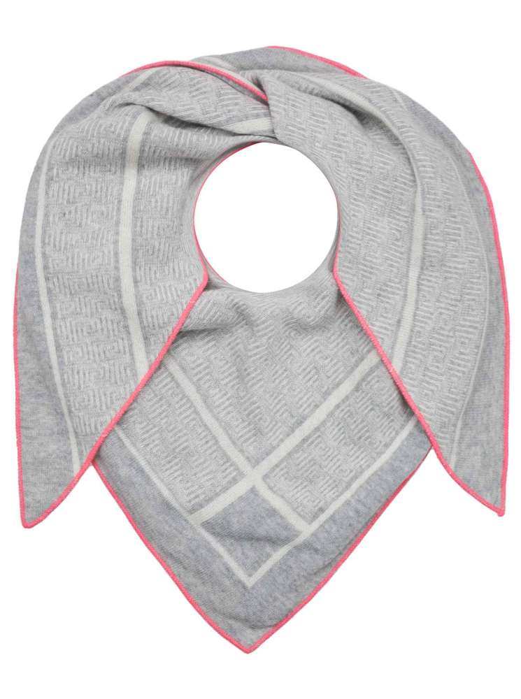 💕 Zwillingsherz Dreieckstuch "Labyrinth Story" mit Kaschmir Grau mit Rand Pink