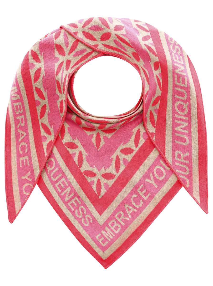 Ein stilvolles Dreieckstuch mit einem zarten Blumenmuster und dem inspirierenden Schriftzug "Embrace Your Uniqueness". Hergestellt aus einer Mischung aus 50 % Baumwolle und 50 % Polyacryl für Weichheit und Haltbarkeit. Perfekt, um deinem Outfit einen Hauch von Individualität zu verleihen und gleichzeitig warm zu bleiben.