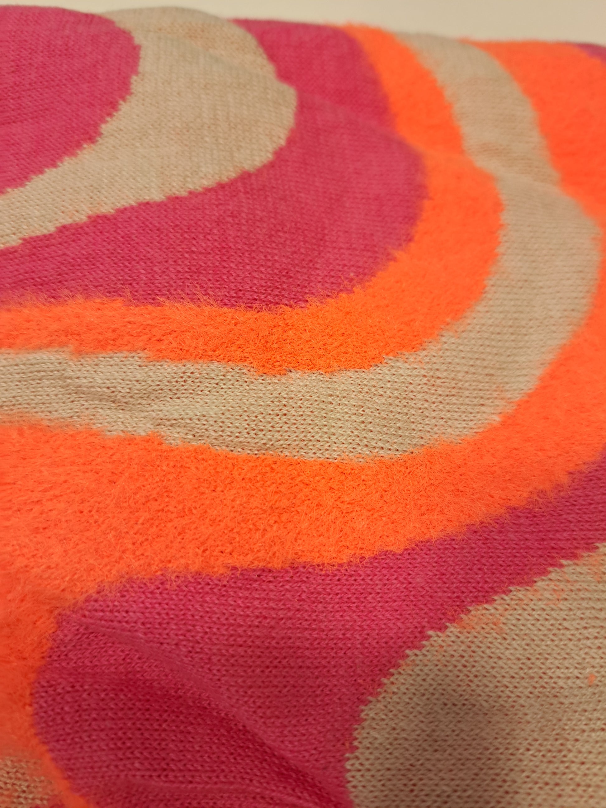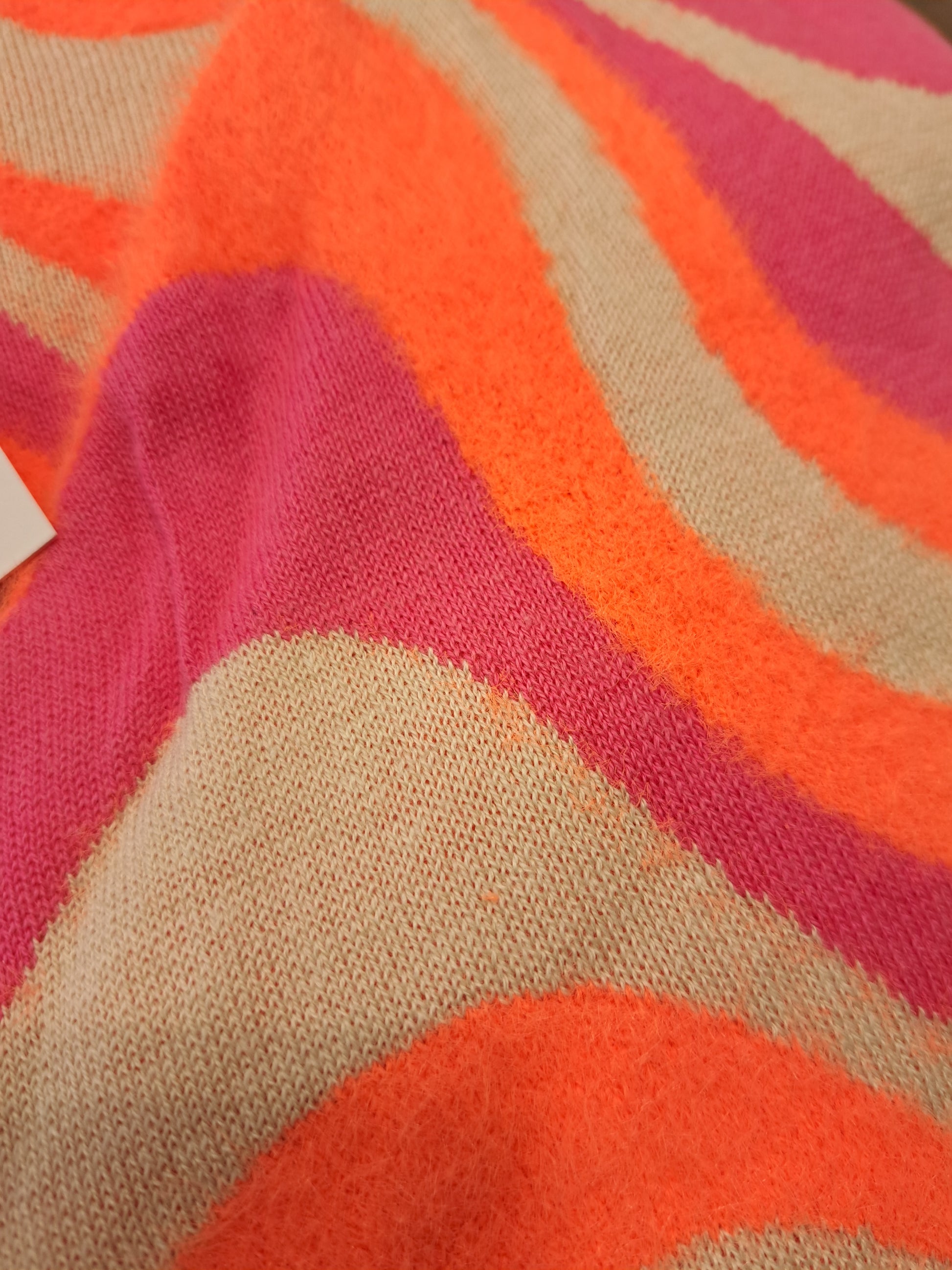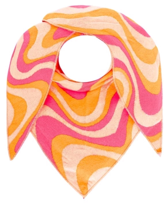 Das Dreieckstuch "Happy Waves Hairy" begeistert mit auffälligem Wellen-Print in leuchtenden Neonfarben. Weich, bequem und ideal für ein stylisches Statement. Das Dreieckstuch hat flauschige Fellakzente.