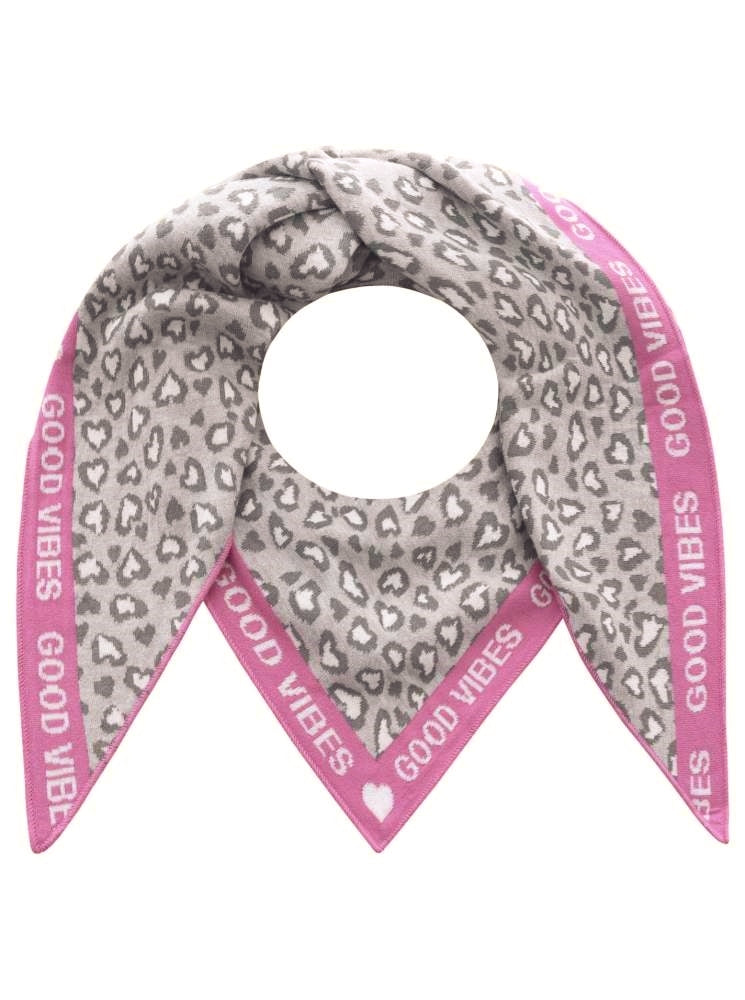 💕 Zwillingsherz Dreieckstuch "Leo Vibes" Baumwolle Hellgrau Pink