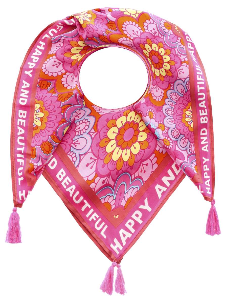 Nachhaltiges Viereckstuch mit Schriftzug "Happy and Beautiful"
