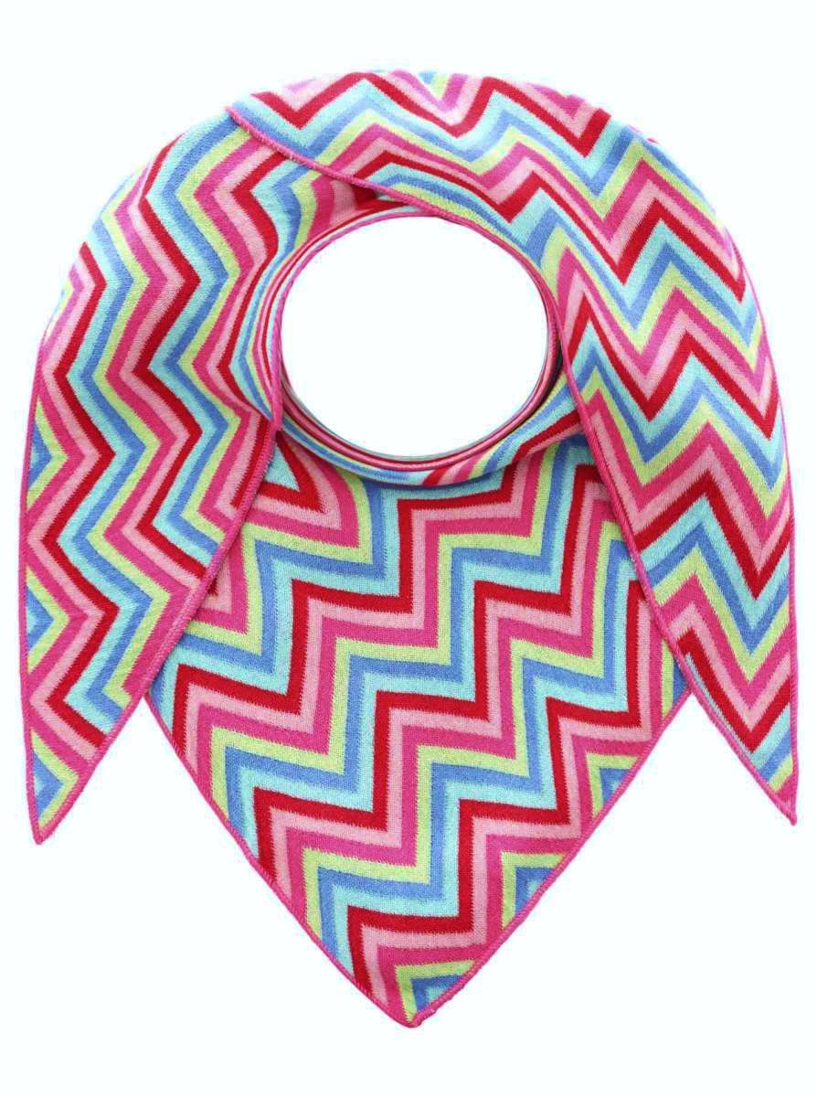 Das farbenfrohe Dreieckstuch macht direkt Lust auf den Herbst. Ein Teil des Tuchs ist von einem großen Zick-Zack-Muster bedeckt. Dank des hohen Baumwollanteils liegt das Tuch angenehm um den Hals und ist wärmend zugleich.