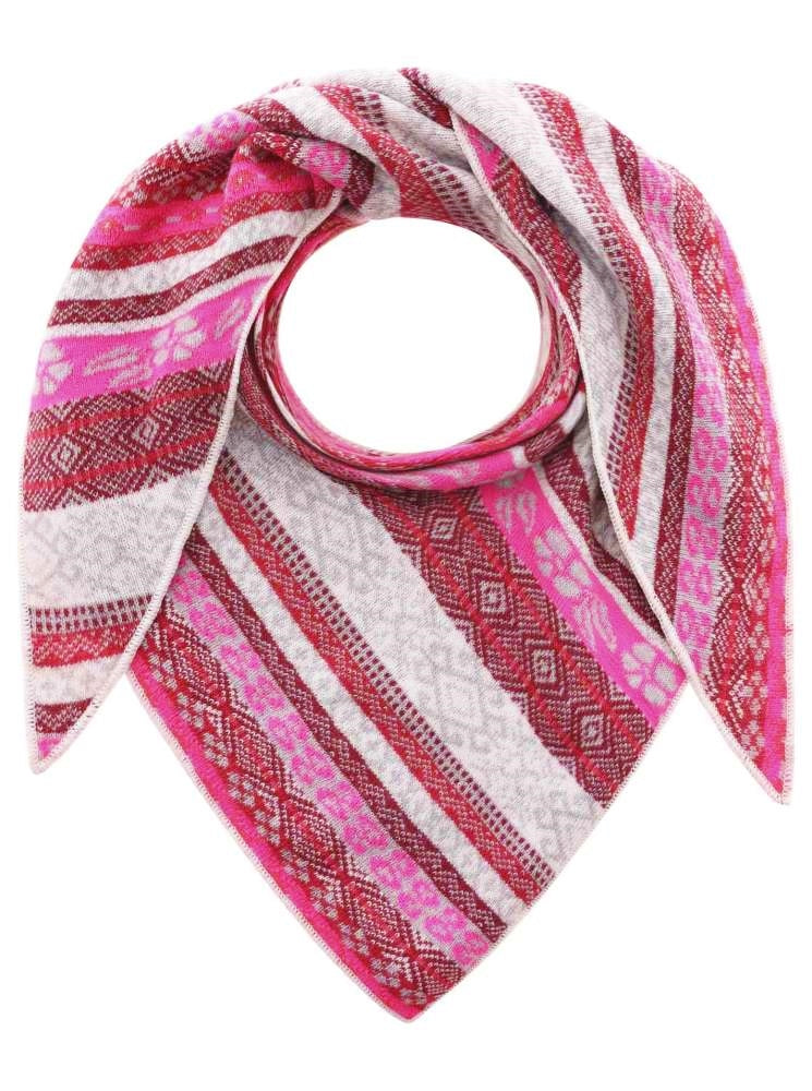 đź’• Zwillingsherz Dreieckstuch "Oslo" Norwegermuster Wolle Kaschmir Rot Pink