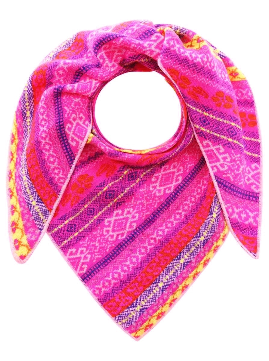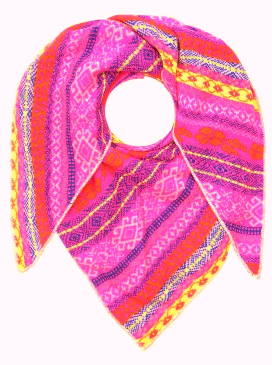 💕 Zwillingsherz Dreieckstuch "Oslo" Norwegermuster Wolle Kaschmir Neonpink