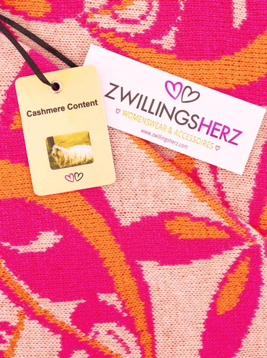💕 Zwillingsherz Dreieckstuch "Winter Neon" Wolle Kaschmir Pink Orange