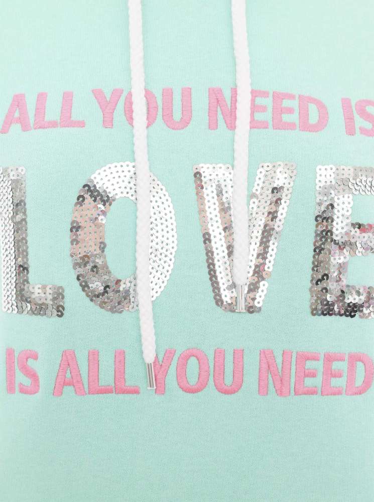 đź’• Zwillingsherz Hoodie Sweatshirt "Paillette Love is all you need" Sweater Baumwolle Mint