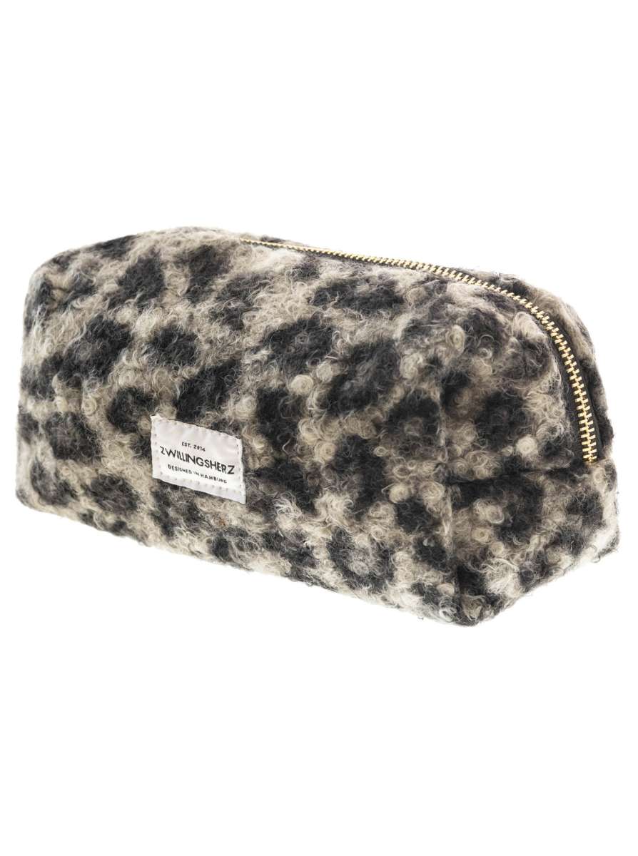 Die Kosmetiktasche "Leo & Teddy" kombiniert trendigen Leoprint mit flauschigem Teddy-Material – ideal für stylische Aufbewahrung deiner Essentials.
