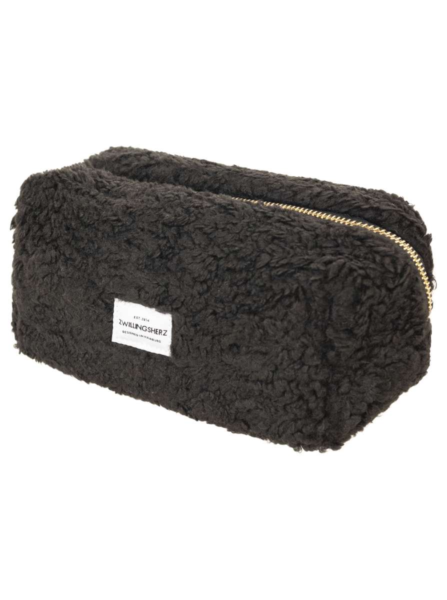 💕 Zwillingsherz Kosmetiktasche "Teddy Plüsch" Pouch Schwarz