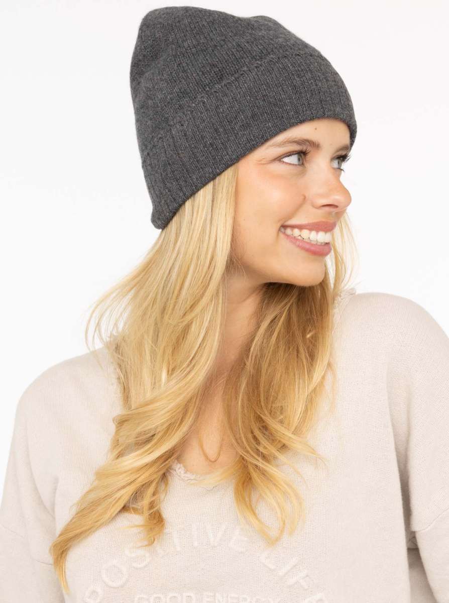 đ Zwillingsherz MĂŒtze "Gerippter Umschlag" 100 % Kaschmir Anthrazit