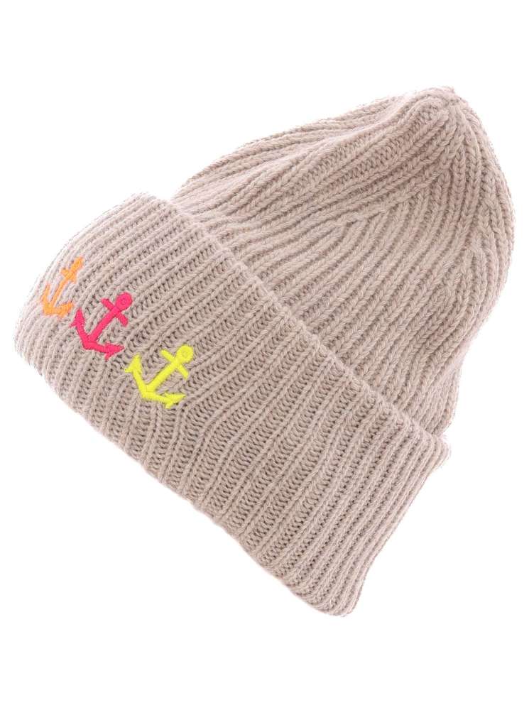 💕 Zwillingsherz Mütze "Drei Anker" Kaschmir Wolle Viskose nachhaltig Beige