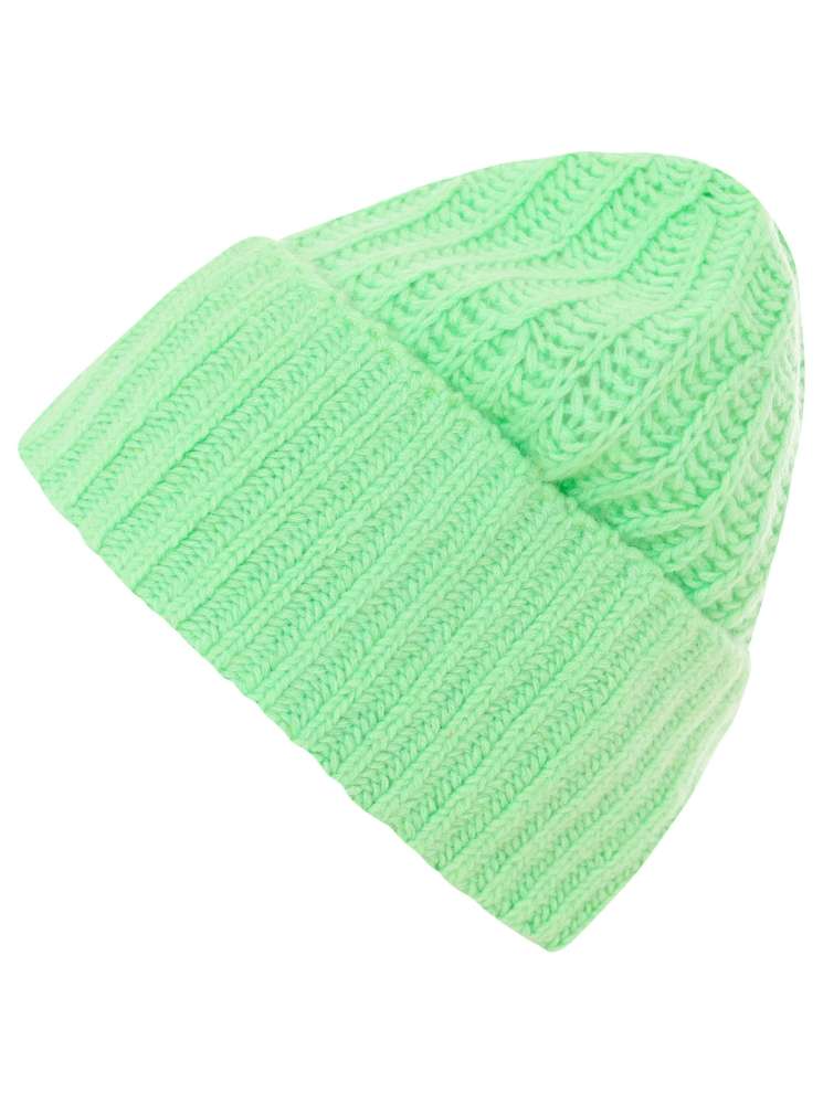 💕 Zwillingsherz Mütze Ribbon Beanie Herren 100% Cashmere "Luxus" Neongrün NEU