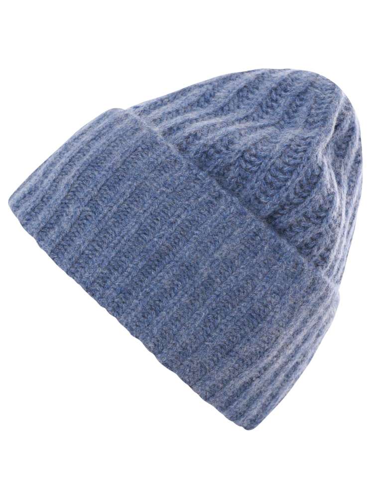 💕 Zwillingsherz Mütze Ribbon Beanie Herren "Luxus" 100 % Kaschmir Gerippt Jeansblau