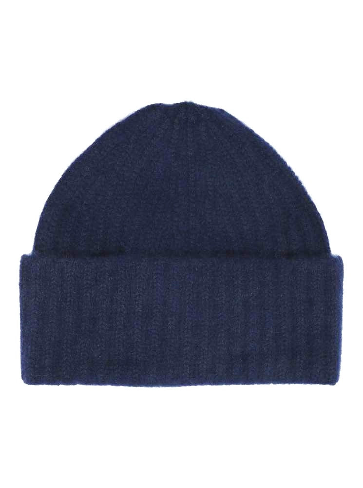 💕 Zwillingsherz Mütze Ribbon Beanie Herren "Luxus" 100 % Kaschmir Gerippt Navy