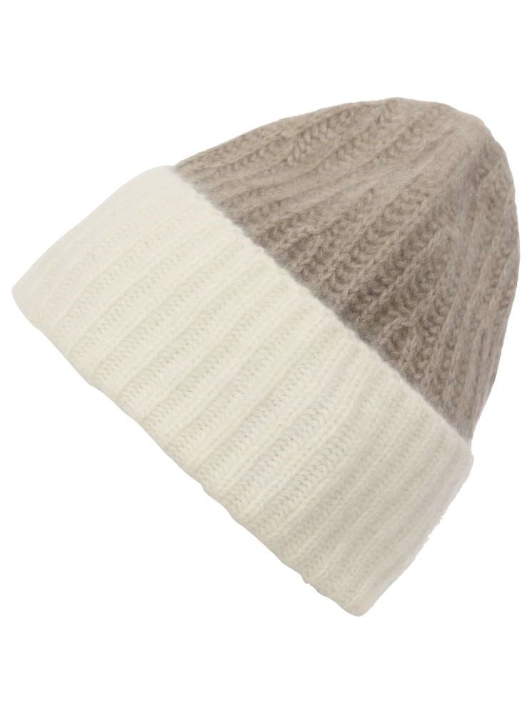 💕 Zwillingsherz Mütze Ribbon Beanie Herren Luxus "Color" 100 % Kaschmir Gerippt Beige Wollweiß