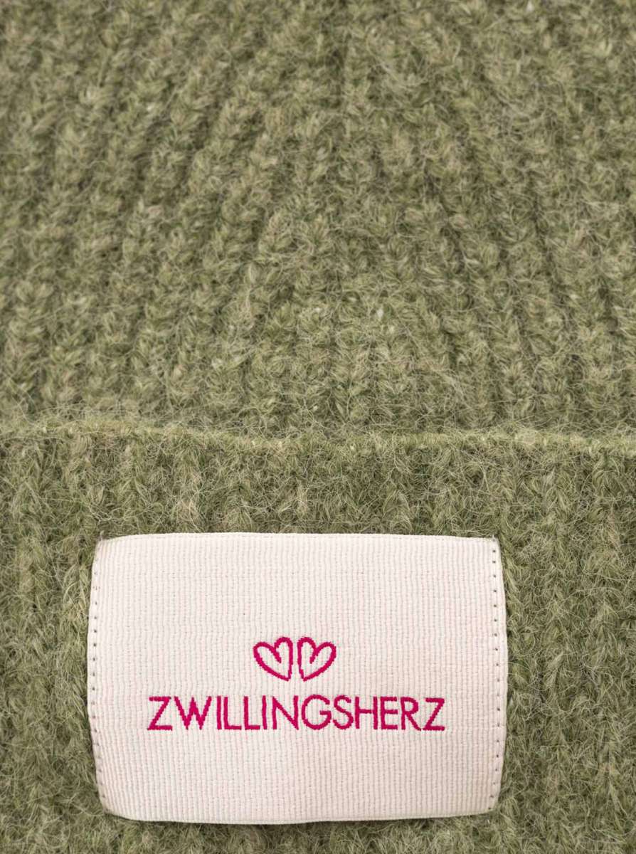 💕 Zwillingsherz Mütze Umschlagmütze "Zwillingsherz Patch" Wolle gerippt Khaki