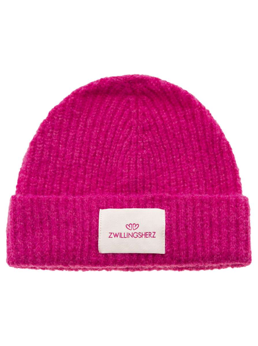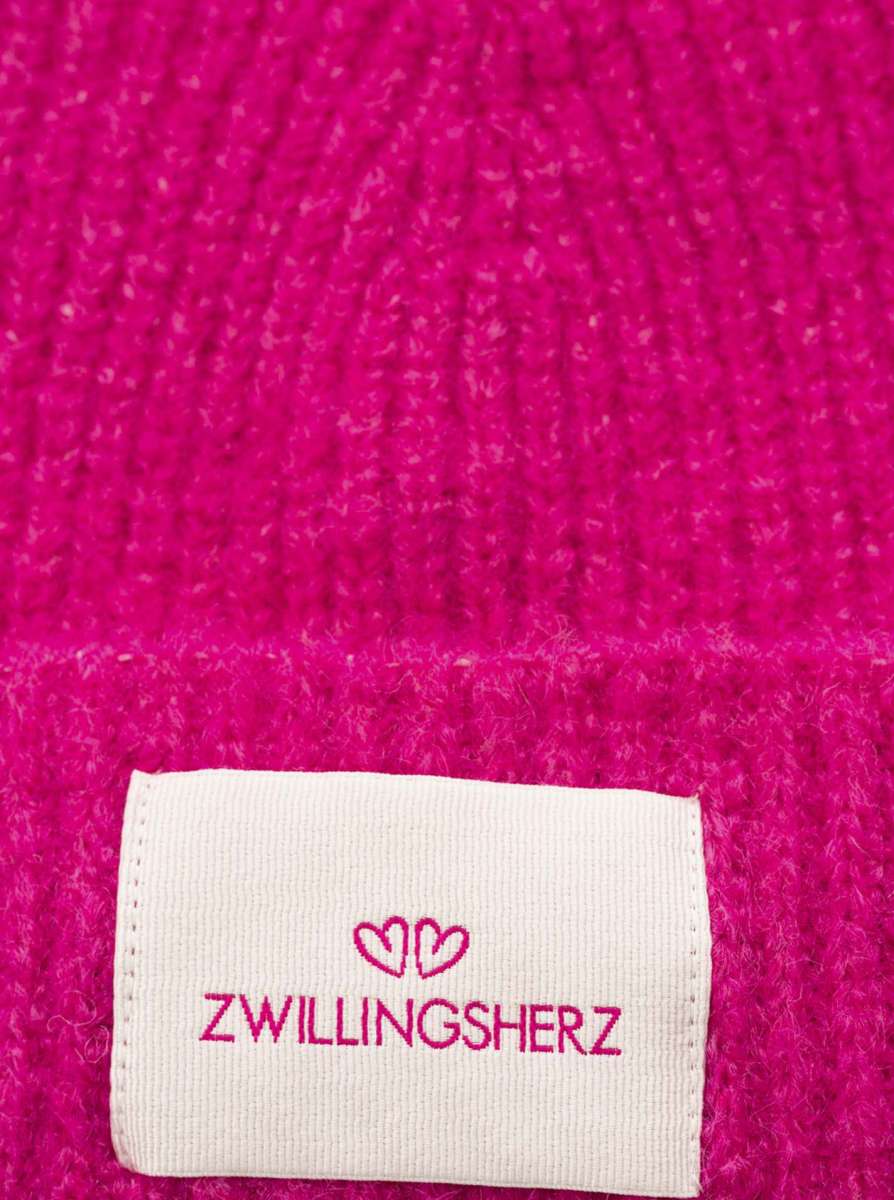 💕 Zwillingsherz Mütze Umschlagmütze "Zwillingsherz Patch" Wolle gerippt Pink