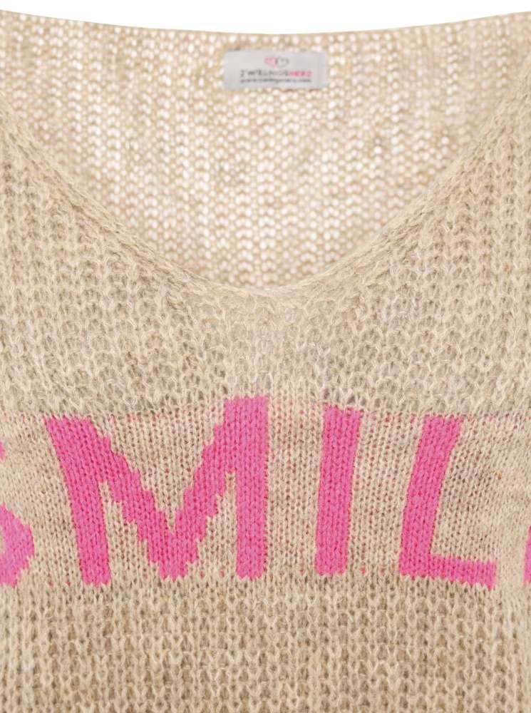 💕 Zwillingsherz Oversized Strick Pullover "Smile" Beige