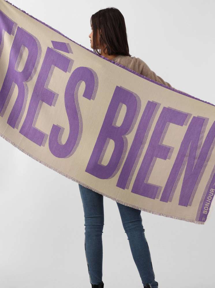Zwillingsherz Wollschal mit "Très bien" Statement