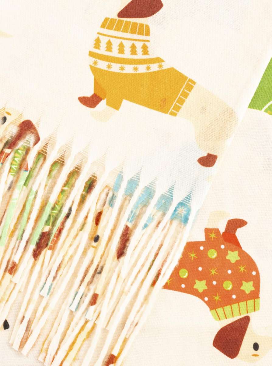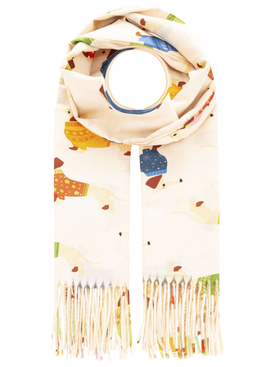 Der Schal "Dressed Dackel" begeistert mit seinem witzigen Dackel-Motiv und kuscheligem Material – perfekt für warme, stylische Akzente.