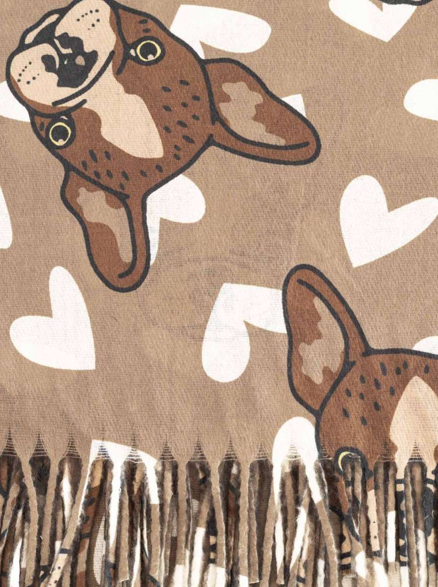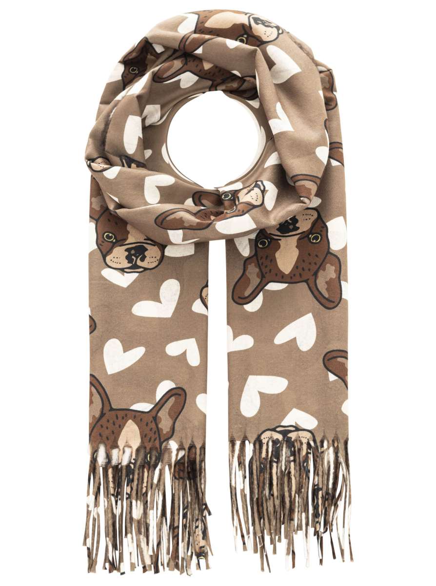 Der Schal "Frenchie Love" überzeugt mit süßem Frenchie-Print und weichem Stoff – ideal für gemütliche, liebevolle Looks.