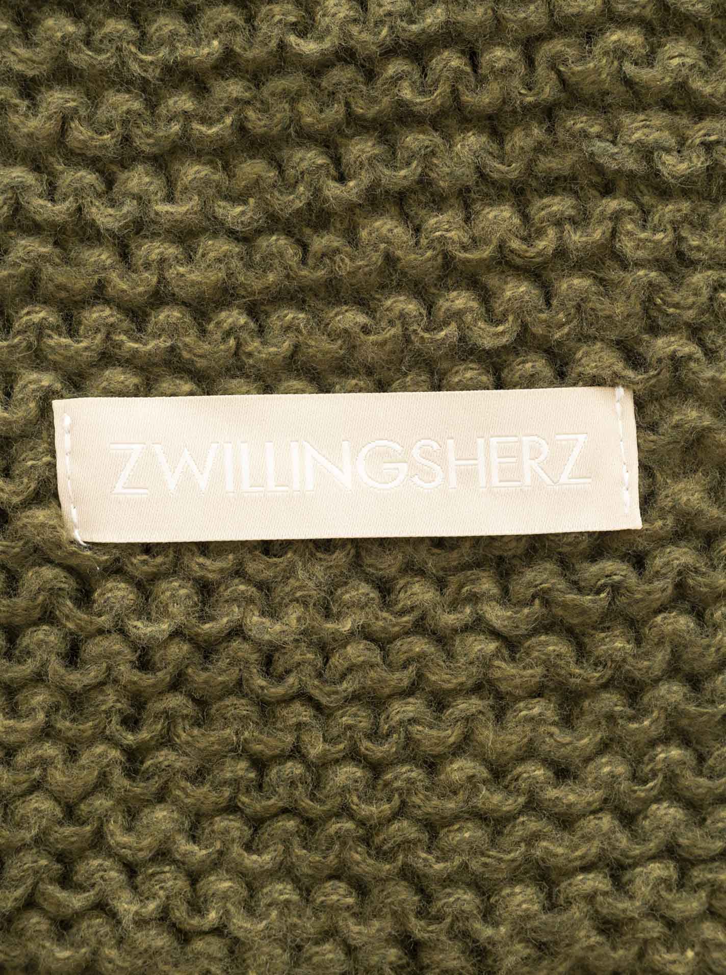 💕 Zwillingsherz Schal Grobstrick "Uni & Patch" Khaki