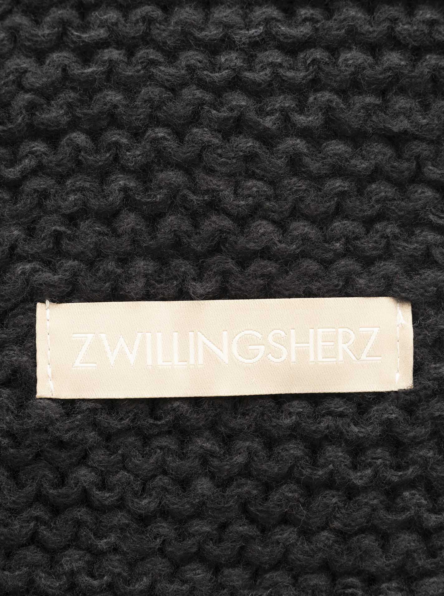 💕 Zwillingsherz Schal Grobstrick "Uni & Patch" Schwarz