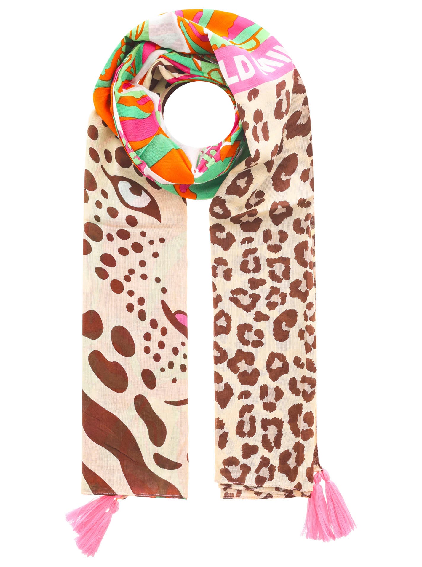 Der Zwillingsherz Schal "Happy Leo" kombiniert den wilden Leo-Print mit einer fröhlichen Ausstrahlung. Aus weichem Material gefertigt, ist er ein stylisches Accessoire, das jedem Outfit einen modernen und lebendigen Akzent verleiht.
