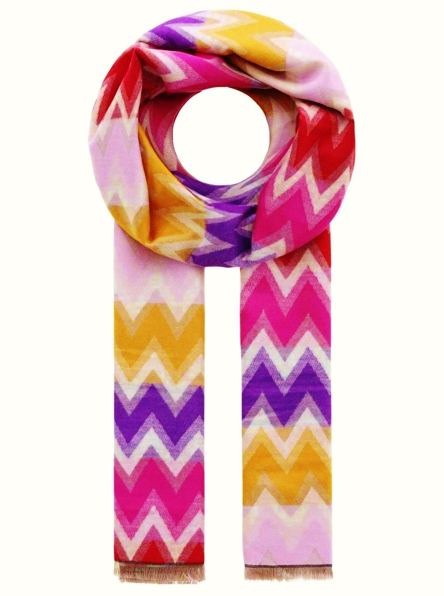 Zick Zack sind die neuen Streifen! Hergestellt aus 100 % Viskose ist dieser Schal nicht nur modisch, sondern auch angenehm zu tragen.