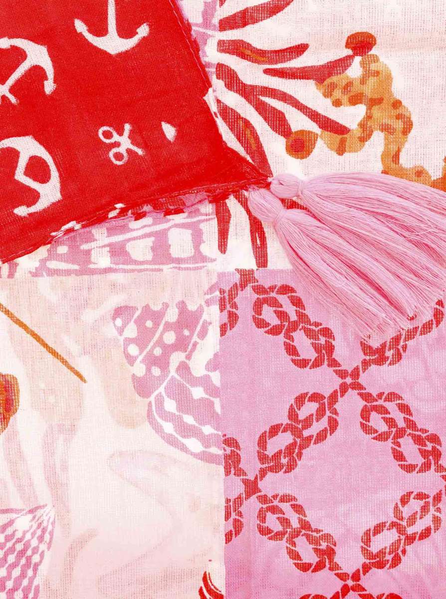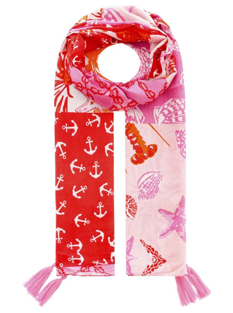 💕 Zwillingsherz Schal "Meeres Print" 100 % Viskose Rot