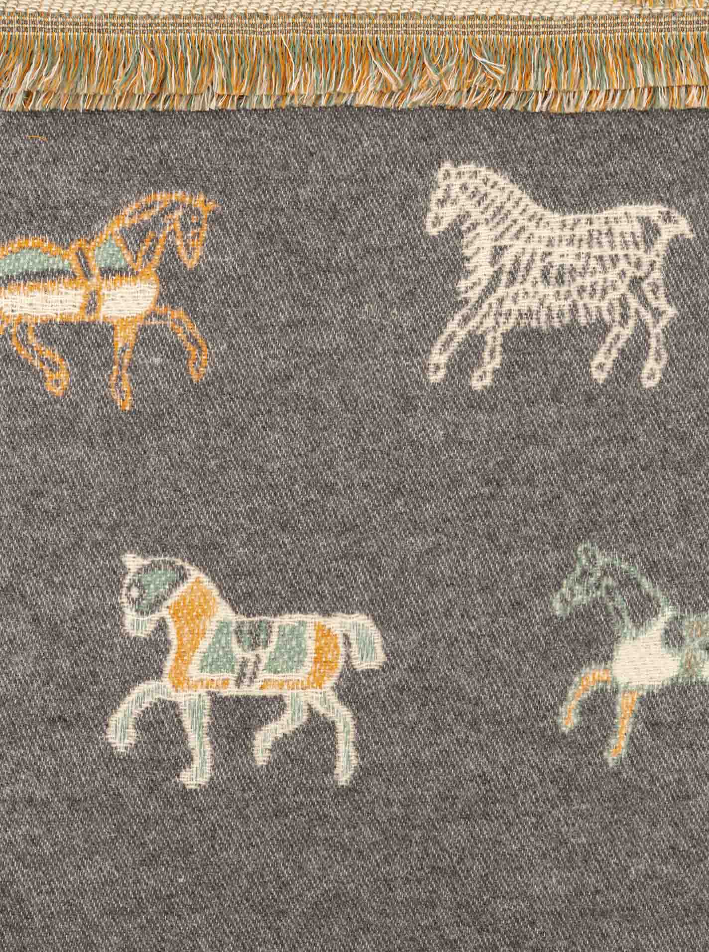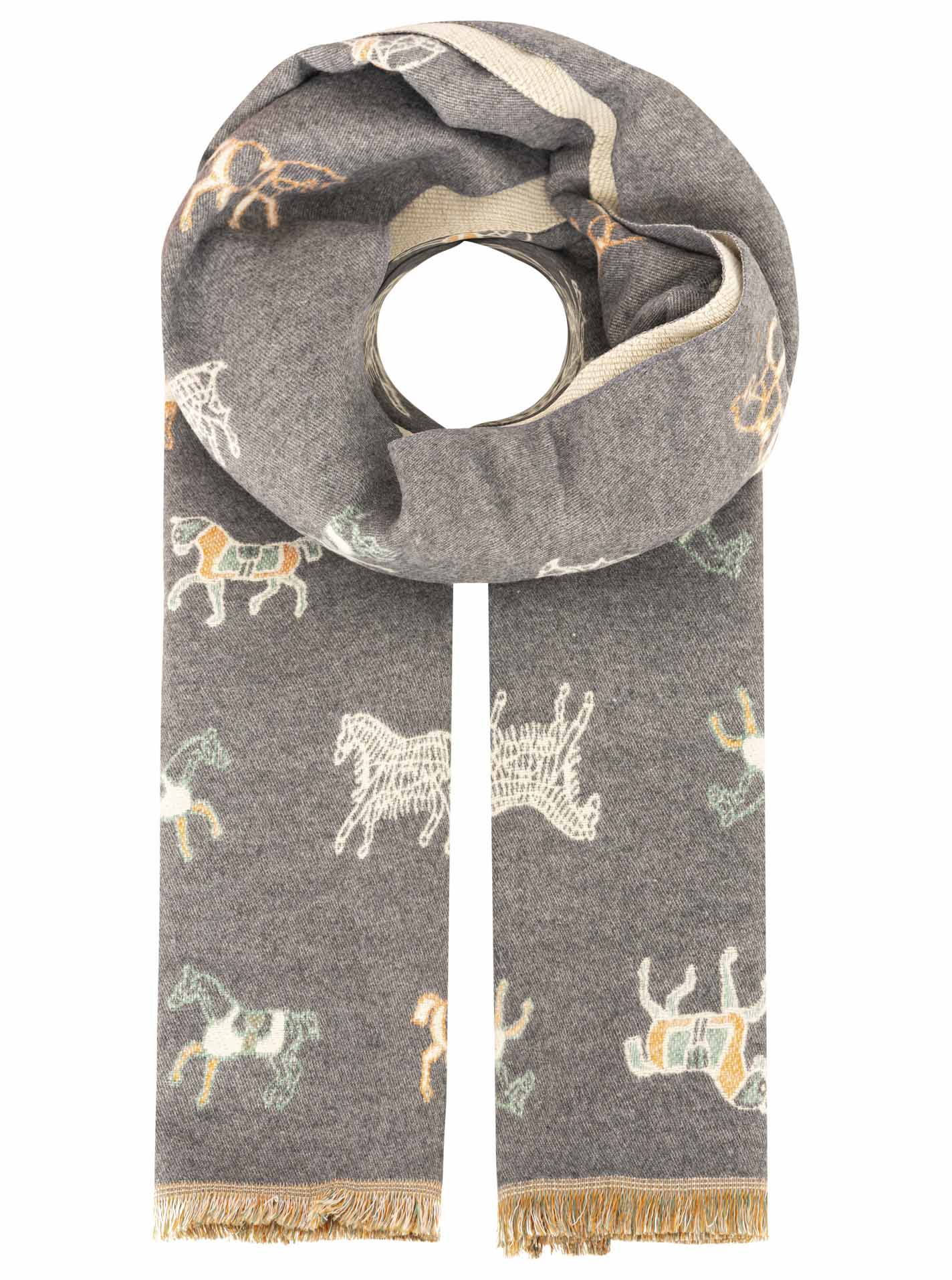 💕 Zwillingsherz Schal "Pferde" 100 % Viskose Grau