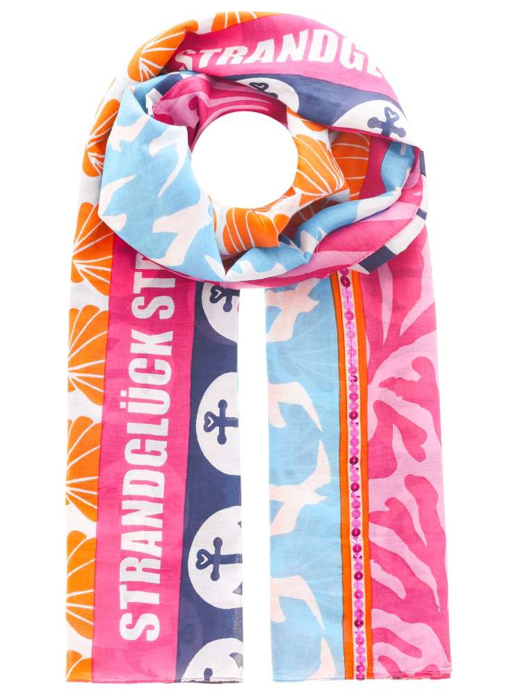Der Schal "Strandglück" begeistert mit seinem Meerestiermotiven und einem dezenten Pailletten-Detail, das für einen funkelnden Akzent sorgt - ein stilvoller Begleiter aus angenehm leichten Material.