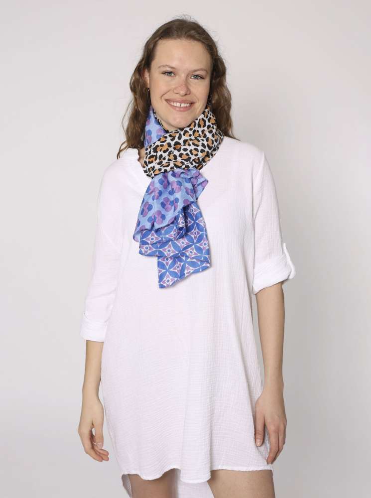 💕 Zwillingsherz Schal Tuch "Wild Mind LeoZH" Beige Blau